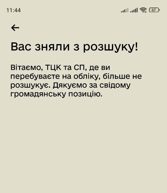 Юрист Центру правової допомоги розпочав із детального аналізу документів та перевірки всіх юридично значущих обставин. Після встановлення причин внесення до розшуку було підготовлено обґрунтовані письмові звернення та супроводжувальні матеріали. Юрист налагодив комунікацію з клієнтом та відповідальними посадовими особами РТЦК та СП, аргументувавши відсутність підстав для розшуку та необхідність негайного коригування даних. У результаті статус "В розшуку" було офіційно скасовано.