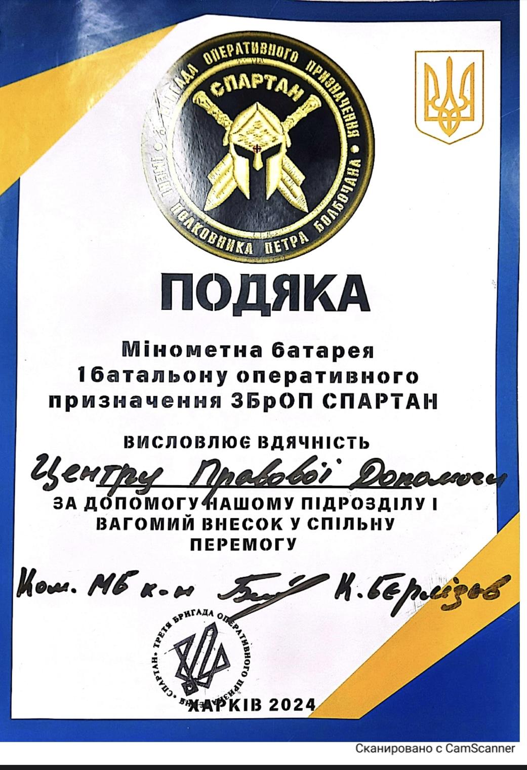 Допомога 3-й бригаді оперативного призначення НГУ «Спартан»
