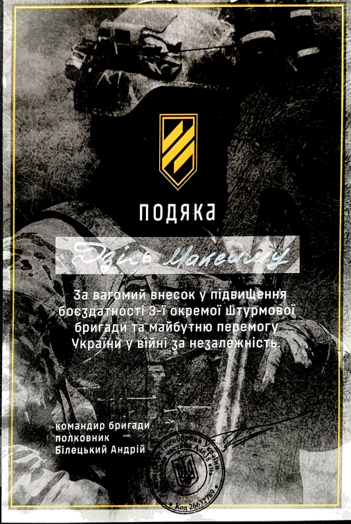 Допомога Спеціальному підрозділу активних дій «Кракен» Головного управління розвідки Міністерства оборони України