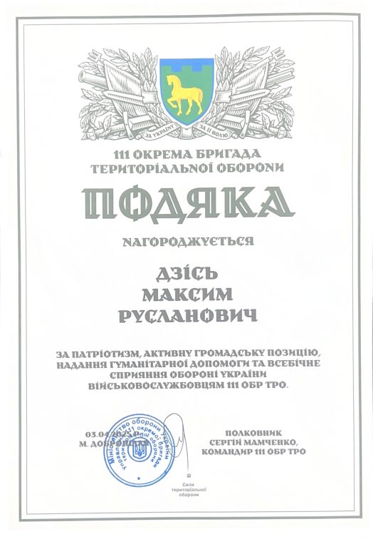 Допомога 111-тій окремій бригаді територіальної оборони