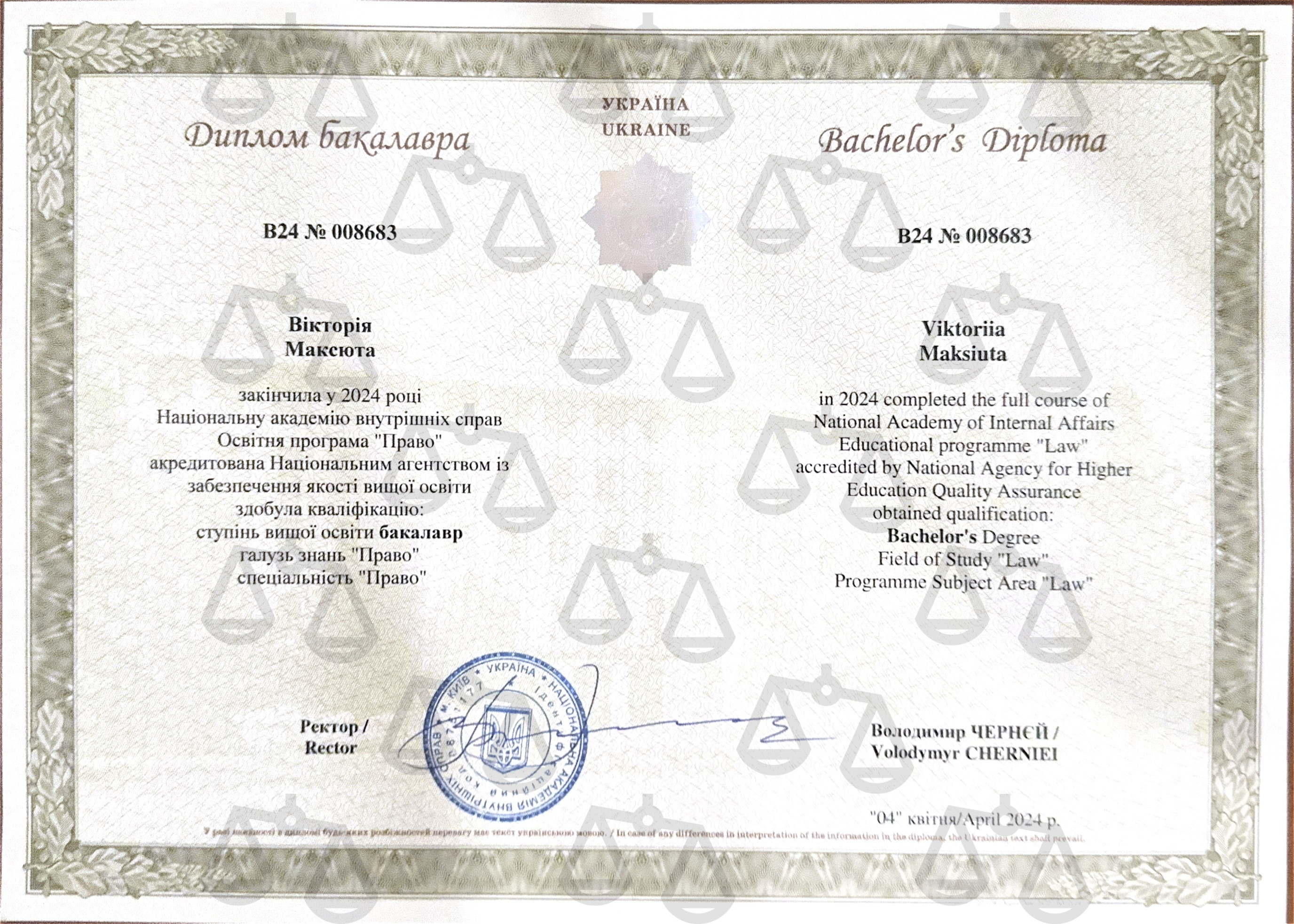 У своїй роботі дотримуюся принципів чесності, відповідальності та конфіденційності. Пишаюся тим, що допомагаю людям відновити справедливість і впевненість у завтрашньому дні. Моє завдання - зробити закон дієвим інструментом захисту кожного клієнта.